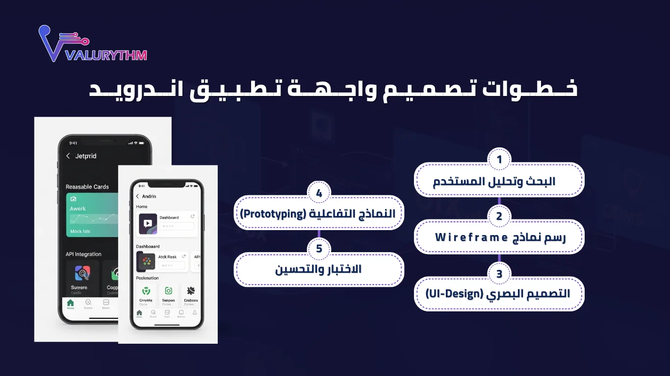 يمر تصميم واجهات تطبيق اندرويد الناجح بمراحل منهجية متسلسلة تضمن أن المنتج النهائي يلبي احتياجات المستخدم ويحقق أهداف المشروع.