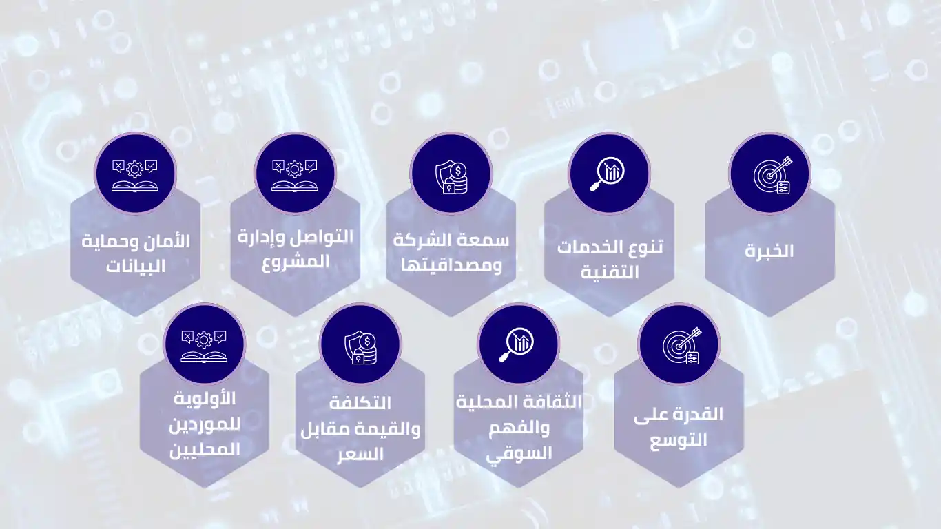 هناك عدة معايير يجب النظر إليها بعناية لضمان أن الشركة تناسب احتياجات مشروعك وتقدم جودة عالية. فيما يلي أهم المعايير: