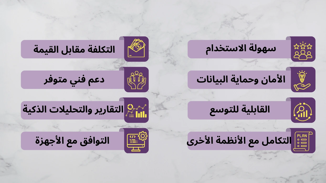 - دعم فني متوفر: اختيار نظام يقدم دعمًا فنيًا متاحًا على مدار الساعة مع قنوات متعددة (هاتف، بريد، شات).